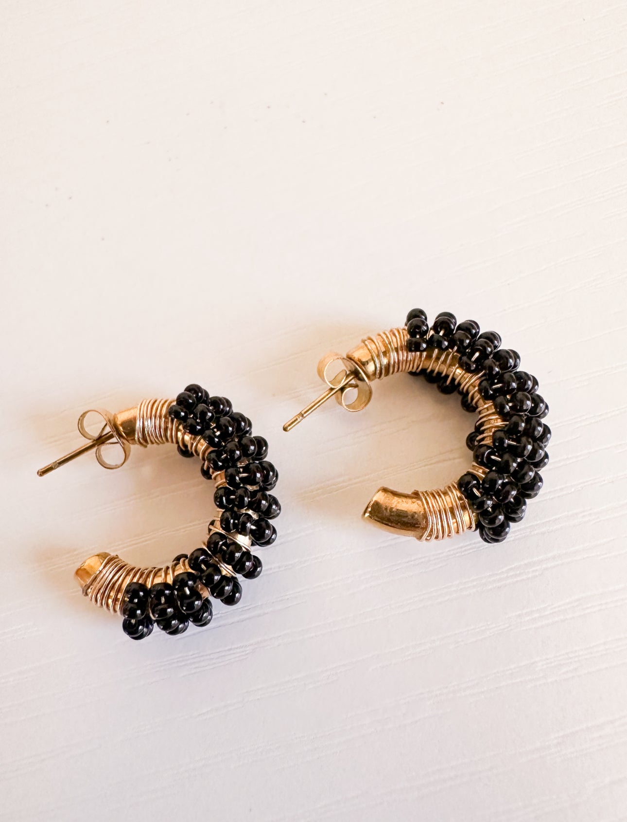 Aros en acero inoxidable, piedras de vidrio, alambre de cobre.